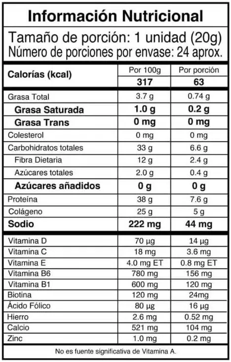 Presentación: 480 g (24 porciones aprox.)