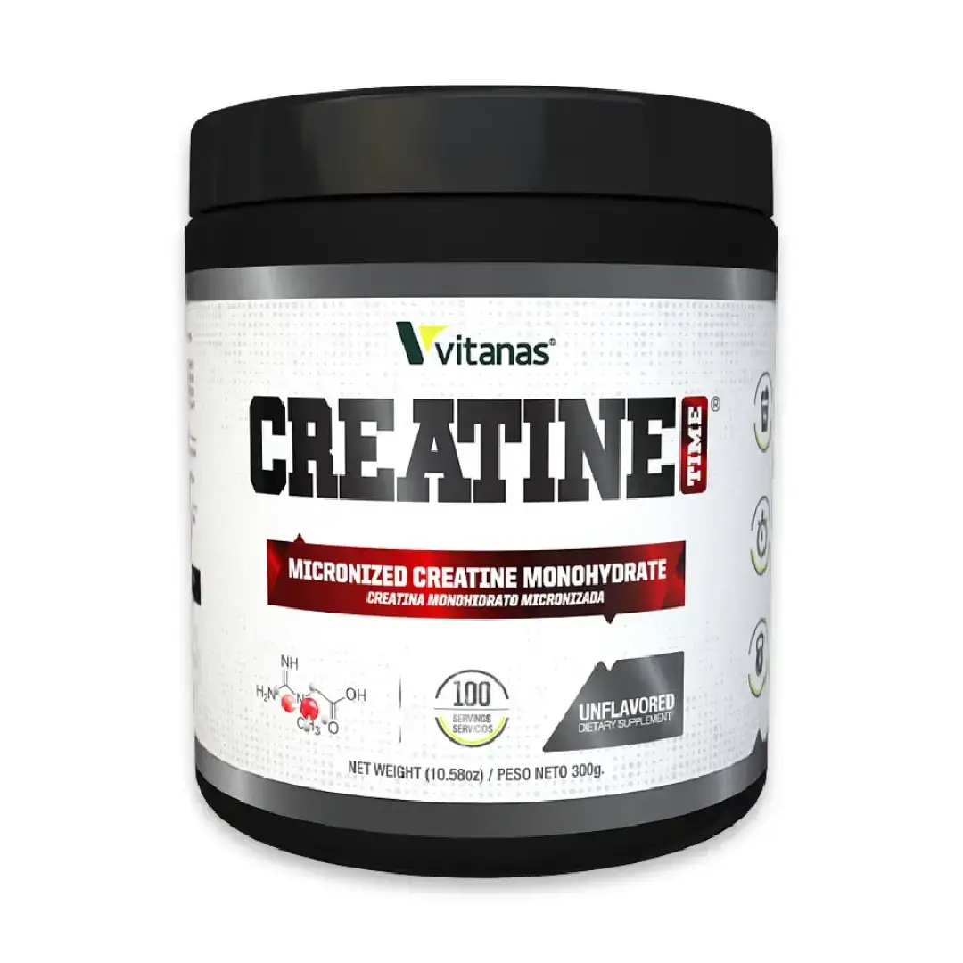 Creatina TIME ofrece 3g de creatina monohidratada micronizada por servicio. 100% pura, sin azúcar ni sabor, ideal para mejorar fuerza, resistencia y recuperación muscular.